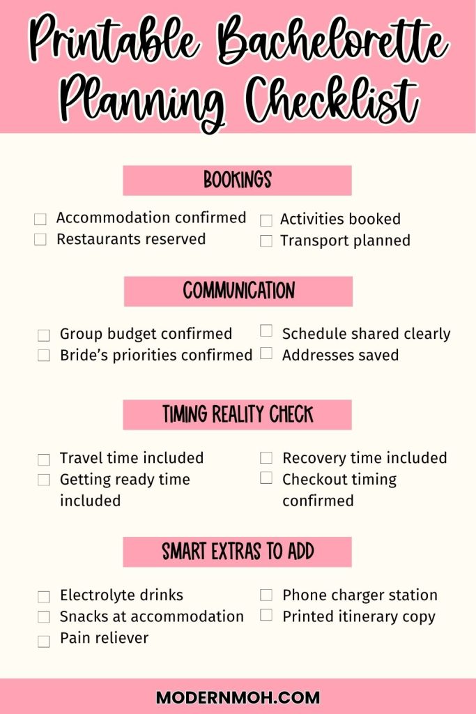 Bachelorette Itinerary Planning Checklist