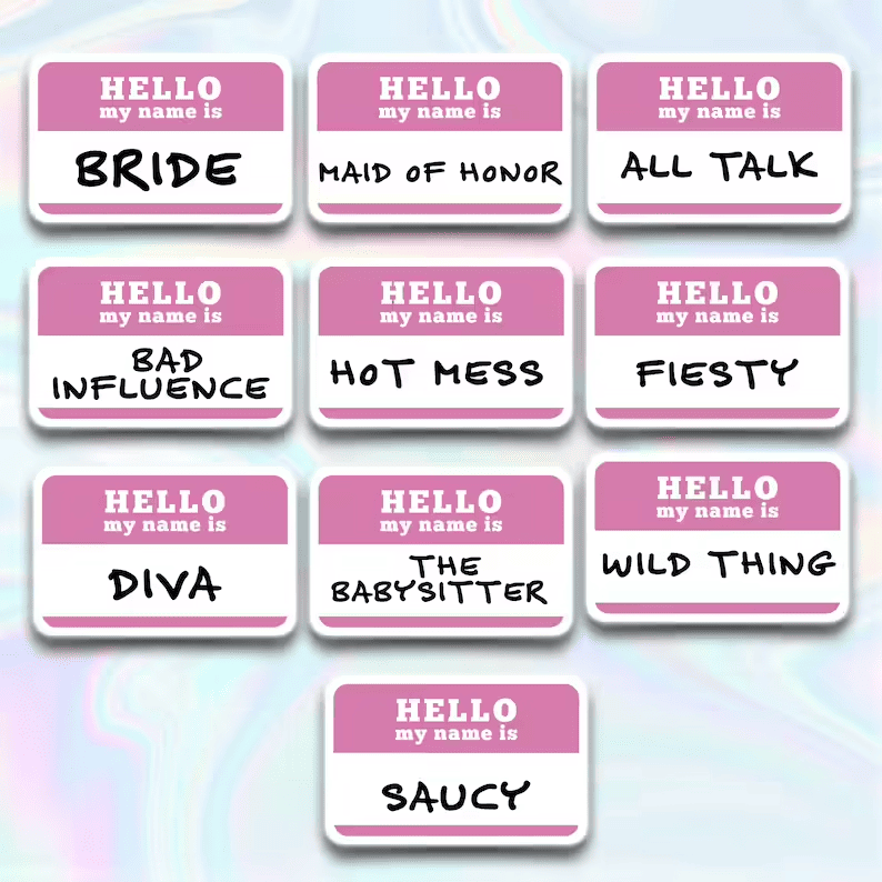 Skip the traditional temporary tattoos and opt for any of these funny party pins or stickers!