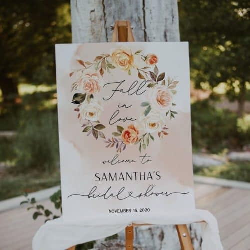 Finish it off with a floral welcome sign and you’ve got everything you need for your fall-themed bridal shower decorations!