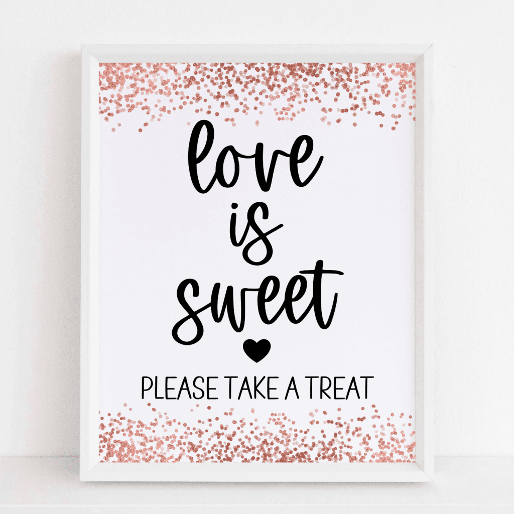 If you want to add some decoration to your favors table, consider using a table cloth that matches your overall color scheme. We also recommend featuring a bridal shower favors sign to top it off!