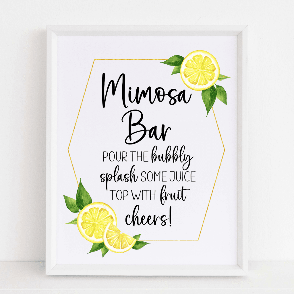 Of course, decorations aren’t absolutely necessary to execute a mimosa bar, but where’s the fun in that? This is your bestie’s bridal shower for goodness sake, so step it up girlfriend! Start with framing a mimosa bar sign (most guests will already know the order to go in, but it never hurts to have a super cute reminder!) to be set up next to the cups.