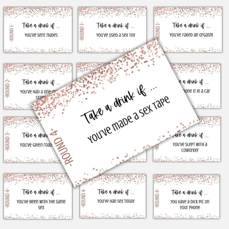 - One 5×7 inch Bachelorette Drink If card (2 per page for printing efficiency) in our “Rose Gold” design
