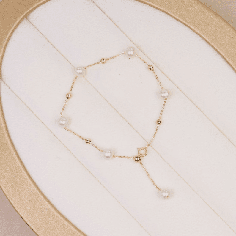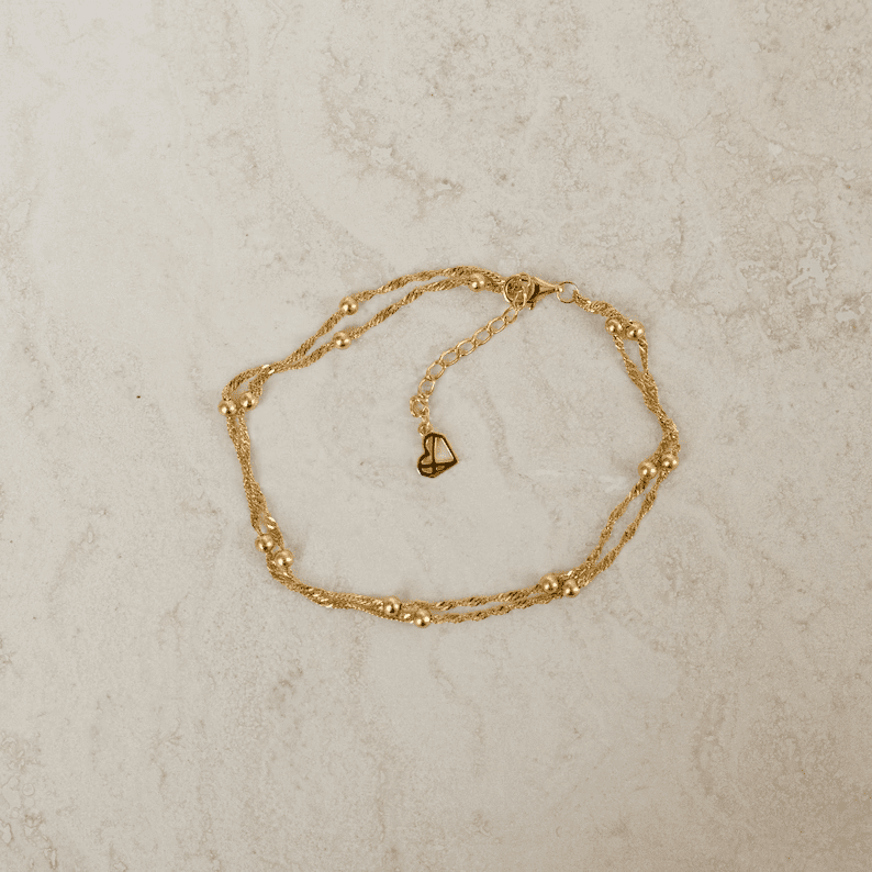 When it comes to bridal party jewelry, you can never go wrong with a classic gold piece, and this dainty chain bracelet is no exception. Featuring duo Singapore twist chains lined with tiny beads, this gold bridesmaid bracelet comes packaged ready to gift in an elegant jewelry box.
